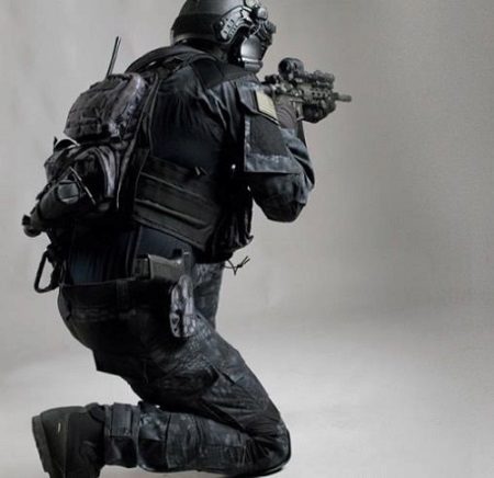 A dark gray version of camouflage (or black with a smoky tint) was used by the prison guard and the military during night special operations.