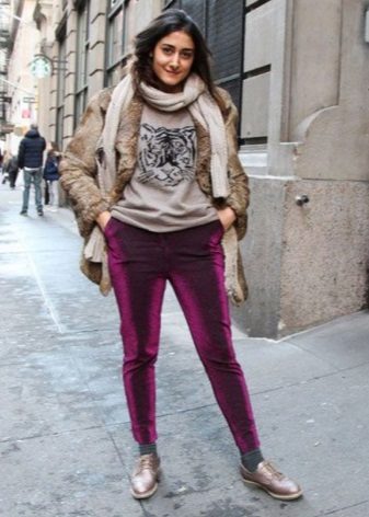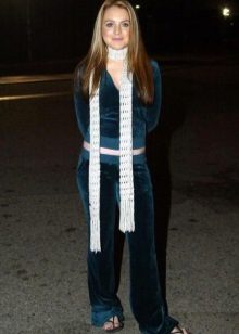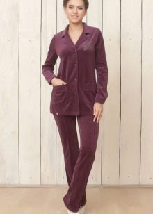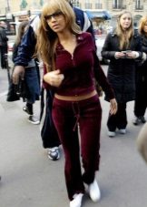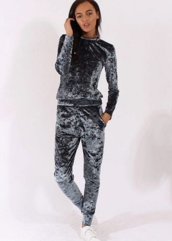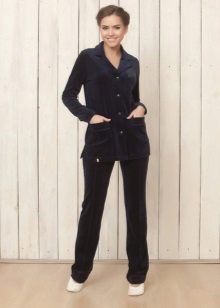 It is not necessary to wear the entire costume, trousers and a jacket can be perfectly combined with other items of clothing. So, for example, a beautiful velor jacket can be worn with jeans or a skirt. And velor trousers are perfectly combined with plain or color T-shirts, smooth tops, T-shirts, etc.