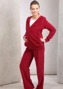 Due to its qualities and practicality, velor is often used for sewing special clothes for pregnant women.
