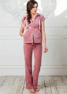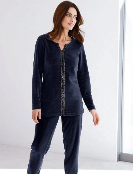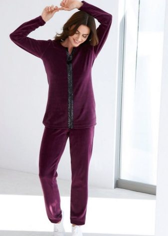 A velor suit is part of the wardrobe. This model is especially convenient and comfortable in the cold season. Velor is very soft and pleasant to the touch, plush surface gives the skin a feeling of tenderness and warmth. Such a suit even in a home environment looks very unusual and elegant. Especially if the model is complemented by a beautiful decor.