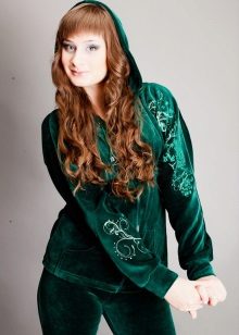 Velor is a fairly versatile material. Velor suit allows you to gently hide some of the shortcomings of the figure and perfectly emphasizes its merits.