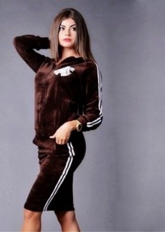 Another variation of this outfit is a velor suit with a skirt. Such a kit will look very harmonious, for example, on a tennis court. In this kit you can go for a walk around the city.