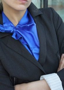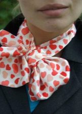 The free end can be threaded into the loop and twice - in this case, an original knot is formed, similar to a rose, which can be shifted to one side or left in the middle. You can fix the knot with a spectacular brooch.