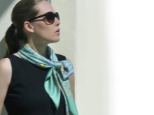 The French scarf of saturated coloring (turquoise, emerald, cherry) fits perfectly into the fashionable wardrobe of a romantic girl.