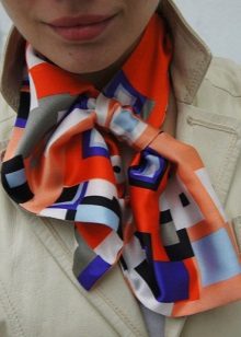 This thing is a scarf on the neck of a triangular shape, at one of its ends is a loop. Due to this, the accessory can be decorated in different ways - this is already due to your imagination. In addition, the texture, as well as the color palette of French scarves, is very diverse.