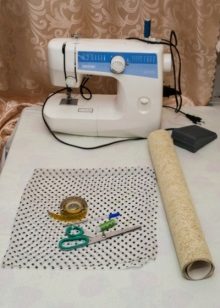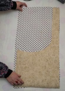 Do not forget that this accessory is cut on both sides, so carefully measure the material so that it is enough. You need to cut out two equal-sized halves, and then sew them on the wrong side, and you can do this manually.