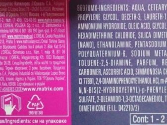 The manufacturer keeps the unique Matrix paint formula secret, and the package contains only information about the main components of the composition.