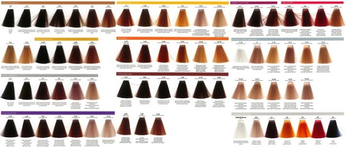 The professional palette includes a huge number of color solutions for blondes, brown-haired women, red and brunettes. For the convenience of working with the palette, the manufacturer has developed a system of alphanumeric designations of shades: