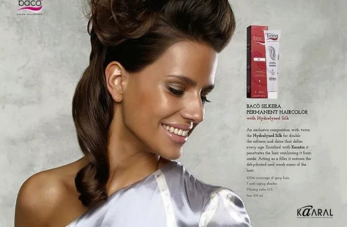 - As part of Kaaral Baco Color Hair-Dye there are hydrolysates of silk extract. Such an ingredient can be obtained from a double strand of silk cocoon. This series is performed using the latest technology and allows you to paint over gray hair well. Also, the product strengthens and moisturizes the strands.