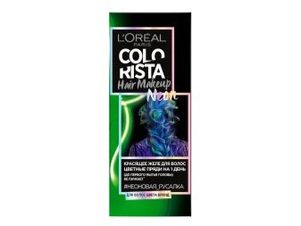 With the Colorista Hair Make Up jelly, you can look every day in a new way and radically change the image, with a minimum of effort. To do this, apply the composition to separate strands, dry and style your hair. It remains only to beat the shade of hair in the makeup using color eyeliner, eye shadow or lipstick of the same or similar tone.