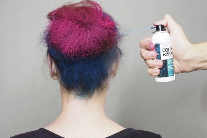To create color accents on the hair, you need to put a towel on your shoulders to protect your clothes and spray the spray on dry, clean hair as close to the surface as possible. Dry and fix with varnish.