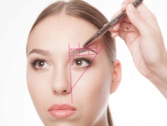 Now you need to arrange the pencil so that its beginning is near the wing of the nose, the middle intersects the outer corner of the eye. The place where the end of the pencil is located will be the end point of the brow arc.