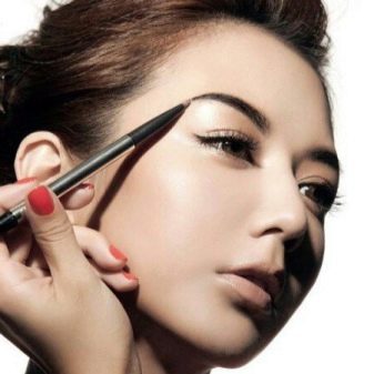 No need to draw a line too long. Highly curved eyebrows are also an unsuccessful decision, it will strengthen hard features.