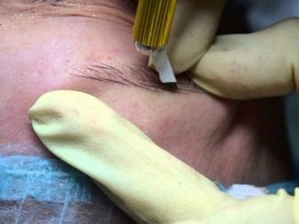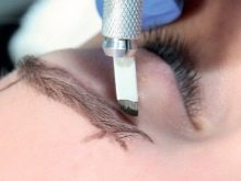 - Then an anesthetic gel is applied to the eyebrow area. After 15 minutes, when the product is absorbed into the skin, the remnants of the gel are removed with a napkin and the skin is wiped with a disinfectant lotion.