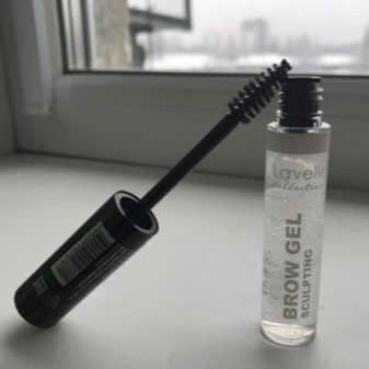 - Gel for eyebrows. This cosmetic product is used to give the eyebrows volume, it emphasizes the hairs. Eyebrows with it will look natural and well-groomed. To do this, it is better to choose a transparent gel.