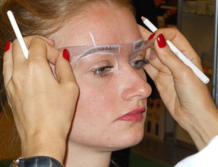 - after that, the boundaries of the eyebrows and their shape are drawn on the skin;
