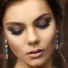 - Landing. The choice of makeup depends on the fit of the eyes. For close or far set eyes, you should choose smoky makeup types. Shades of dark color should be located next to the central part of the eyelid. For deep or close-set eyes, you will need to use a flickering shadow palette along with arrows equipped with a long “tail”.