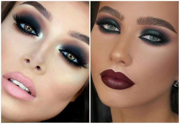 All transitions must be thoroughly shaded, creating smooth transitions. The outer corners of the eyes should be formed, as well as the arrows. They are pulled up, towards the temples, forming pointed shapes. Creating such a make-up, you will need to apply a small part of the dark shadows to the center of the lower eyelid. Classic black eyeliner is allowed.