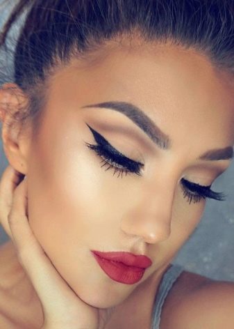 This technique includes the other two: smoky eyes and graphic arrows. The arrows visually enlarge and raise the edges of the eyes, due to which a "cat" look is obtained.