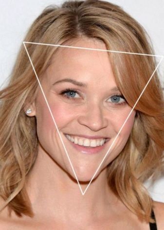 The triangular version suggests a significant difference between the sizes of the frontal part and chin. If the upper part of the face is wide and focuses on itself, then to the bottom it narrows significantly. The chin is small, having a pointed shape. The width of the cheekbones usually corresponds to the width of the forehead.