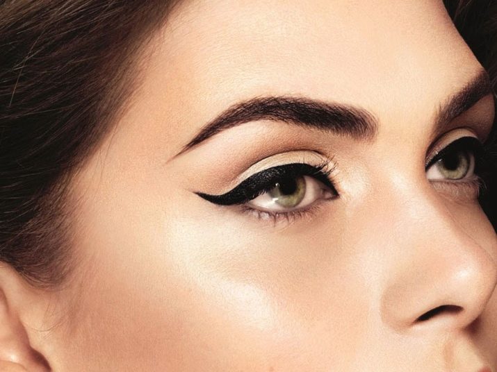 Ideal arrows for the "square" - tending to the eyebrows, noticeably raised. Avoid horizontal arrows, do not be afraid of the bold arrows a la cat's eye that go beyond the eyelids. Such arrows will make larger or more expressive small or narrow eyes.