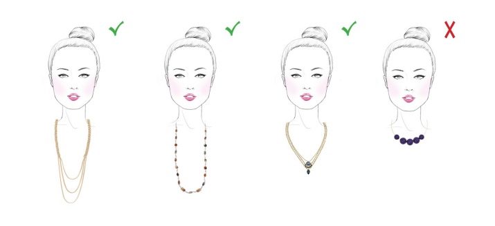 Do not wear short beads and chains that make the jaw visually even rougher. Use subtle jewelry, they will give the image elegance and lightness.