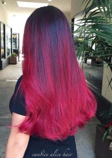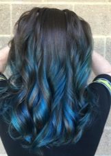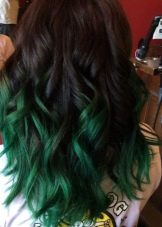 As a rule, a similar two-color staining technique is applicable to dark curls. There are a lot of options for using shades and colors to highlight the tips - these can be natural tones, as well as bright colors.