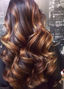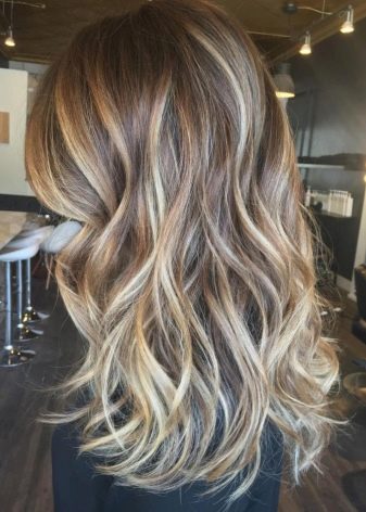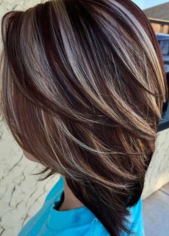 The principle of the master’s work in this technique involves mixing the primary colors among themselves, as a rule, the dark base color is highlighted in a light shade. And also there are options suitable for blondes. As a rule, hair is highlighted throughout the length during highlighting. A very spectacularly selected two-color version will look on a haircut cascade. Painting is characterized by minimal harm to the hair.