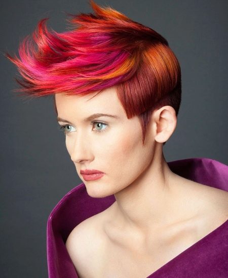 Bright colors combine perfectly with different styling, and a significant part of creative hairstyles falls on short hair.