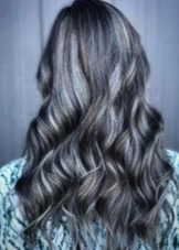 Shimmer hair changes its shade depending on different angles of view and illumination. The stylists managed to recreate fantastic cold shades and irresistible brilliance on the curls, evoking visual associations with overflows of moonlight, with velvet, with pearl radiance.