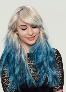 - The ends of light and bleached curls can be painted in a gentle blue tint. For the contrast effect, you can choose juicy tones.