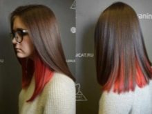 Hidden dyeing on dark hair will look original using red and all its shades. For saturated black, shades of blue and violet are suitable.