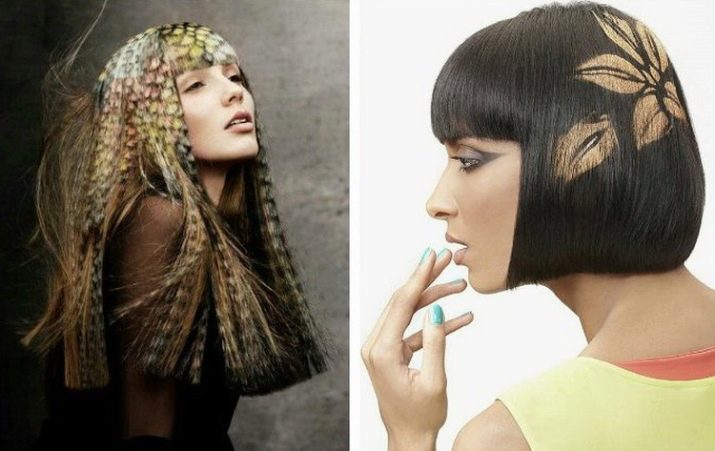 - Stencil staining allows you to create whole color compositions on the hair, as well as drawings, if the length of the strands allows it.