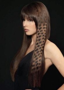 On dark hair, all these prints look bright and extraordinary, they allow you to make bright accents and express yourself. For all its apparent simplicity, dyeing your hair in this way is not at all easy, even if you make a drawing on your side, so it’s better to contact the salon.