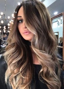 It is a coloring of strands, as a rule, in natural colors. It looks beautiful on the hair, and at the same time does not create an excessively contrasting image. Usually a shade is taken a couple of tones lighter than the base, and this can be cognac, caramel, coffee with milk, etc.