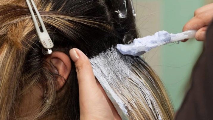 - all ends of the hair are lightened, for this, paint is applied to them and foil is applied on top;