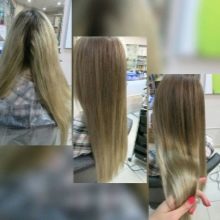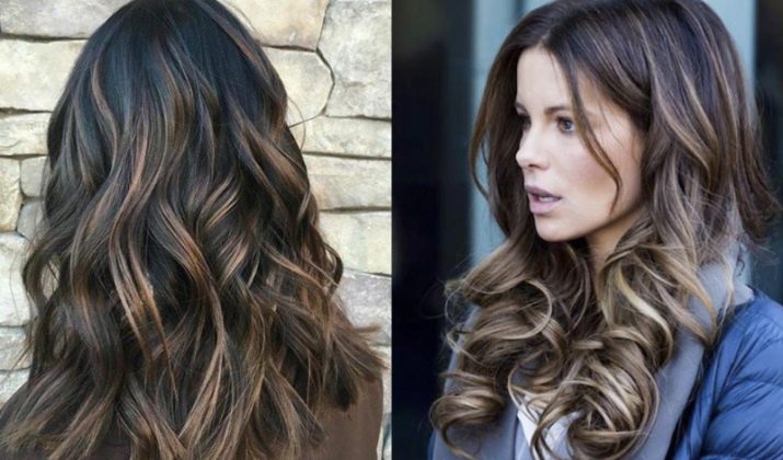 - Balayazh also combines several shades, but the difference is that the coloring occurs vertically. As a result, one color flows into another, two or three shades are chosen. The shuttles are similar with the same technique. Both options, unlike ombre, do not provide gradient staining. The strands can be arranged in a chaotic manner; long hair looks especially good with this staining.