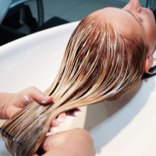 After the set time has elapsed, the hair should be washed well, apply a color fixer, if it is in the kit. If not, you can add a couple of tablespoons of vinegar to the water and rinse your hair with this solution. Then apply the balm. Dyed hair requires special care to make it look vibrant and shiny. Regular use of balms and masks will help with this.