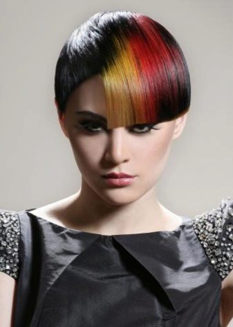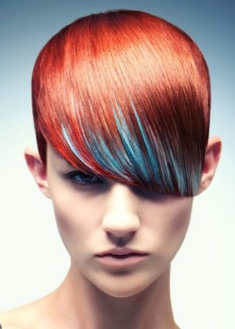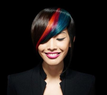 - Another new direction is contrast bangs. This option looks appropriate only if the bangs are pronounced, straight, with a flat or oblique cut. And also separate contrasting locks in hair are pertinent.
