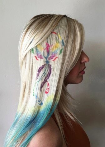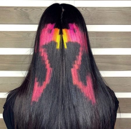 - A real work of art on your hair can happen when screen staining. It can be absolutely any pattern or pattern with a choice of all kinds of shades, both rainbow and bright, as well as calm and natural. But the technique requires the hand of a master to make it look perfect and really beautiful.