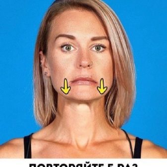 Another remedy for sagging cheeks resembles a children's speech therapy exercise. Taking a deep breath, you should tighten your lips and puff out your cheeks, and then place your hands on your cheeks so that your fingers cover your ears. Creating pressure, it is necessary to keep the cheeks puffed for 5 seconds. The number of approaches is 5.