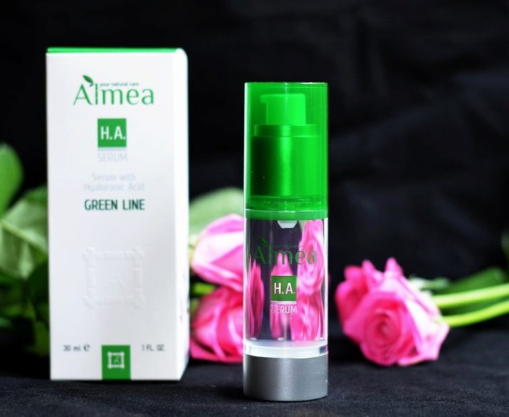 - Almea H. A. Serum. This option includes hyaluronic acid. It has excellent moisturizing properties. It’s worth using such a cosmetic product from the age of 18. It is used for different types of skin, but on a mature dermis it will show the maximum effect, as it includes a special substance that allows cells to actively recover. The product has a compact bottle, a comfortable dispenser. It is quickly absorbed, has a light consistency, does not cause allergic reactions.