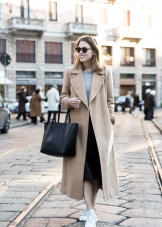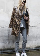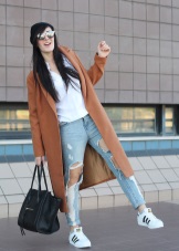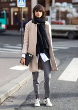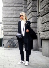 For the autumn period, you can combine sneakers with a coat. Glasses will help to complete the image.