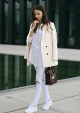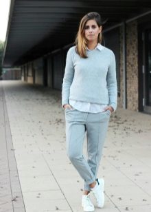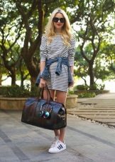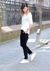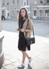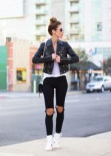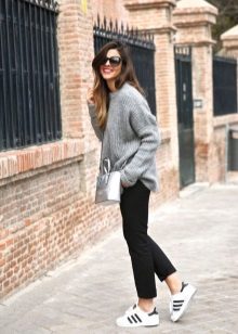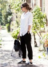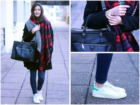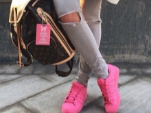 Blue and red sneakers look beautiful and stylish. For the summer, green models are an ideal choice. Gray sneakers will complement the bright bow. Many prefer camouflage colors. Multi-colored sneakers always act as a bright accent in the embodiment of an unusual bow.