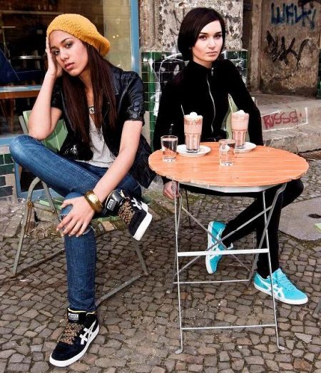 The color scheme of Asics sneakers is very rich in shades and color matching. Female models are lighter and brighter: white, pink, lilac, lime, yellow, various color combinations.