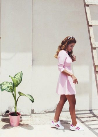 Fashionistas enjoy wearing stylish white sneakers from Adidas. This is confirmed by numerous positive reviews. They are put on not only for a walk in the usual combination with jeans, but even in the office along with business suits and formal dresses.