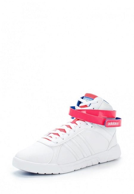 Another direction in the assortment of white sneakers from Adidas is the high models popular among young people (slender girls like to wear them with leggings).