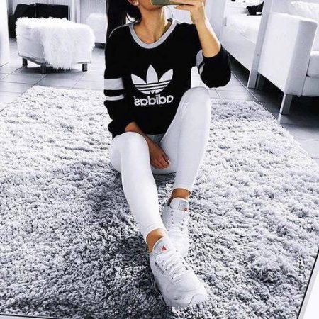 You will look especially stylish if you wear a trendy sweatshirt and leggings in the gym.