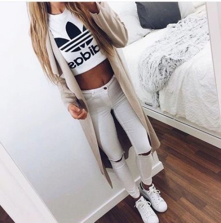 As you know, the “sporty chic” style is in fashion today, when sporting clothes are successfully combined with feminine, romantic or strict clothes.