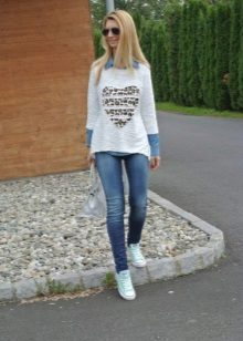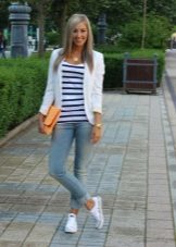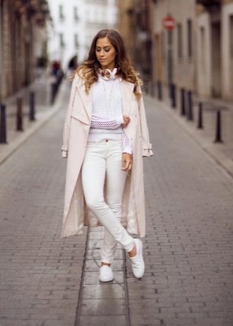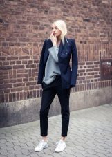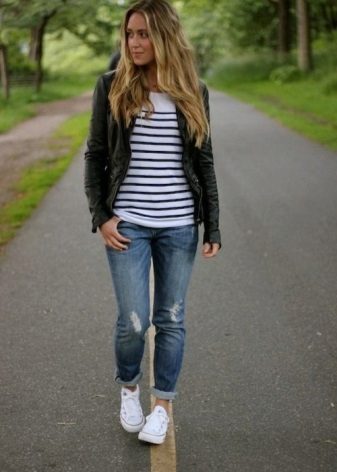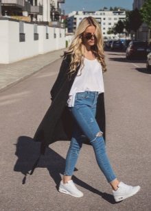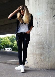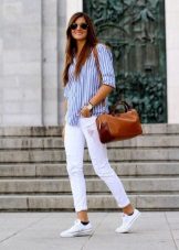 Of course, the most versatile option is a combination of white sneakers and denim. With cropped skinny jeans and boyfriends - for girls. Men usually wear slim fit jeans and looser silhouettes with white sneakers. Denim colors have no limits. The top in this case can be absolutely anything, depending on the case and situation.